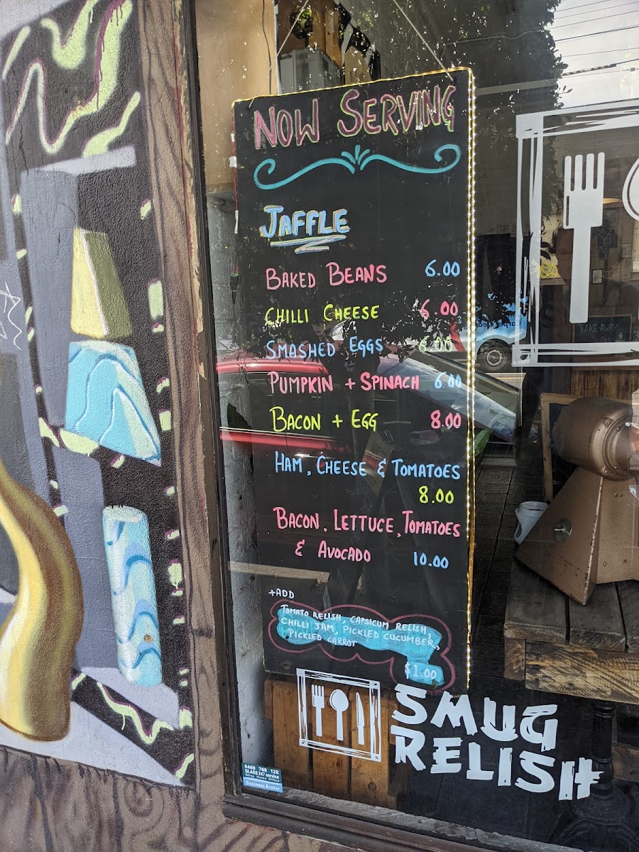 In conclusion, Smug Relish provides a well-rounded menu that combines comforting classics with exciting new flavors, perfect for brunch or a cozy weekend evening out. Whether you’re in the mood for a hot drink, a fresh bite, or something spicy to pair with your meal, this place has something for everyone.